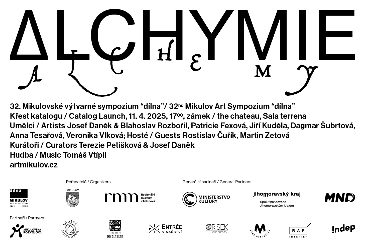 Tématem 32. ročníku Mikulovského výtvarného sympozia je ALCHYMIE. Název letošní „dílny“ je používán jako metafora pro hledání zvláštních forem poznání, které se mohou někdy vymykat vědeckým exaktním metodám, které však zahrnují významný duchovní aspekt a také prvek hry chápaný jako součást svobodné tvořivé práce.